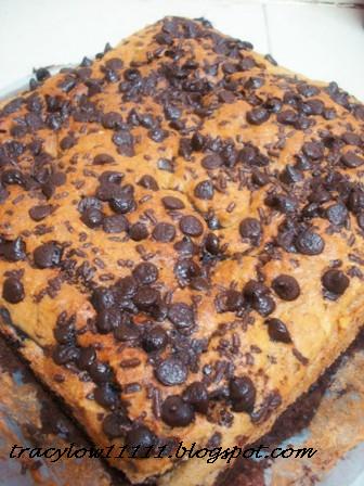 - 把其中一半面糊, 加入可可粉拌匀。 把这份面糊倒进9寸的方形烤盘。